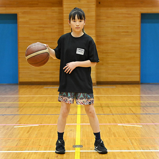 model / 146cm / バスパン (S) + Tシャツ (S)